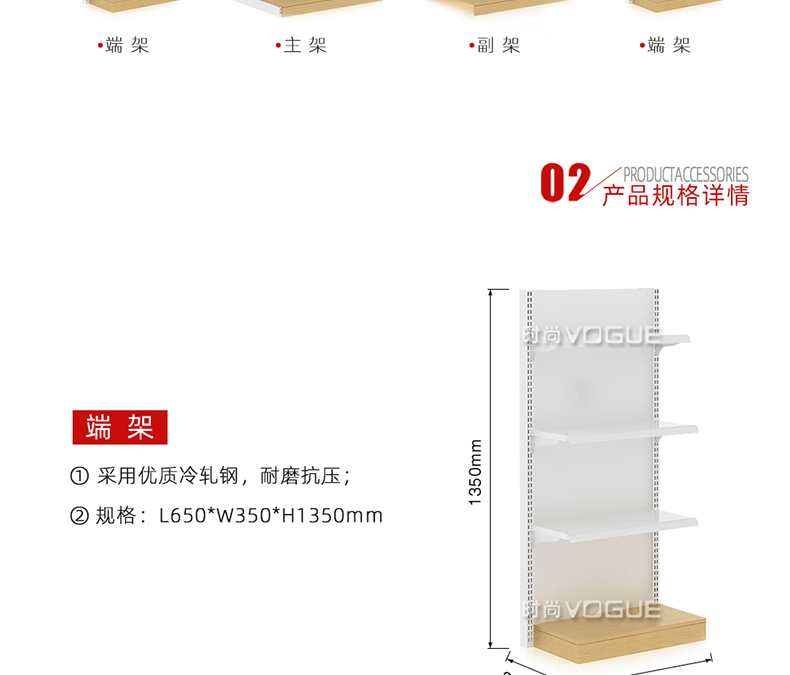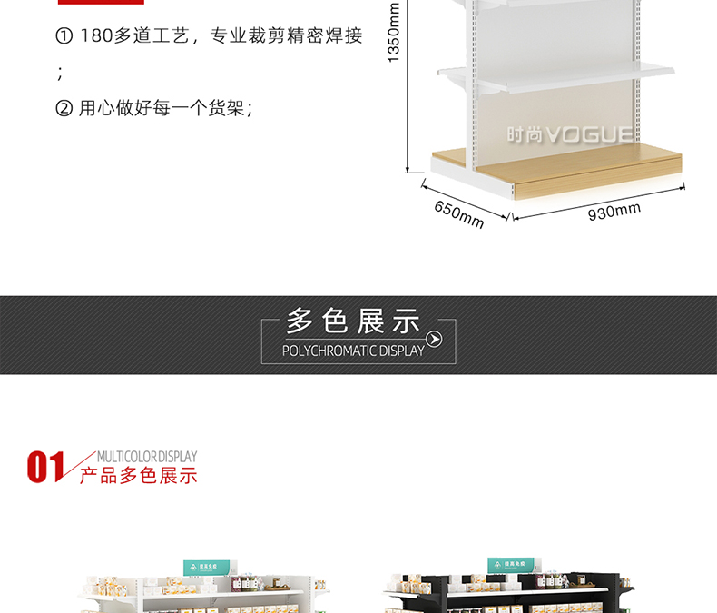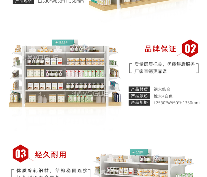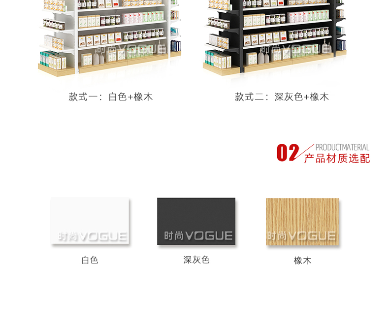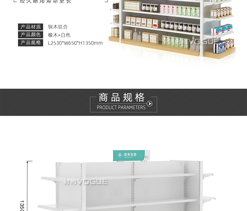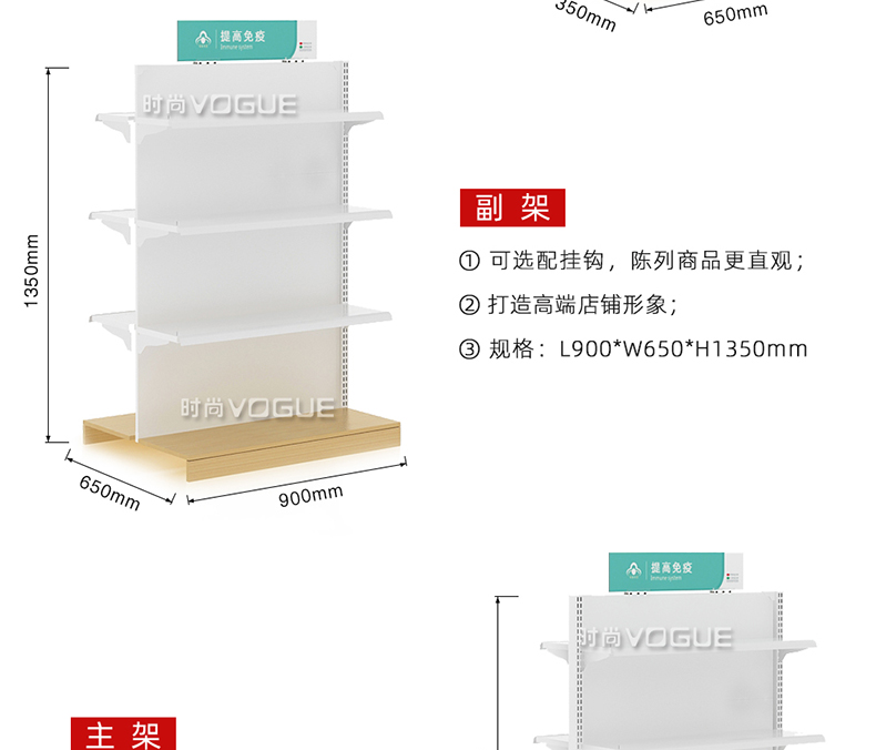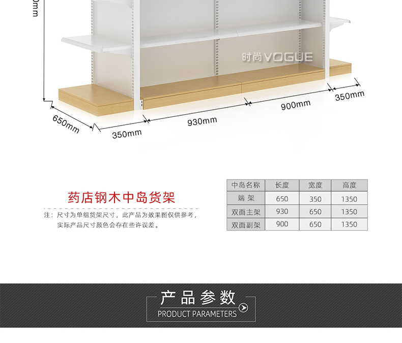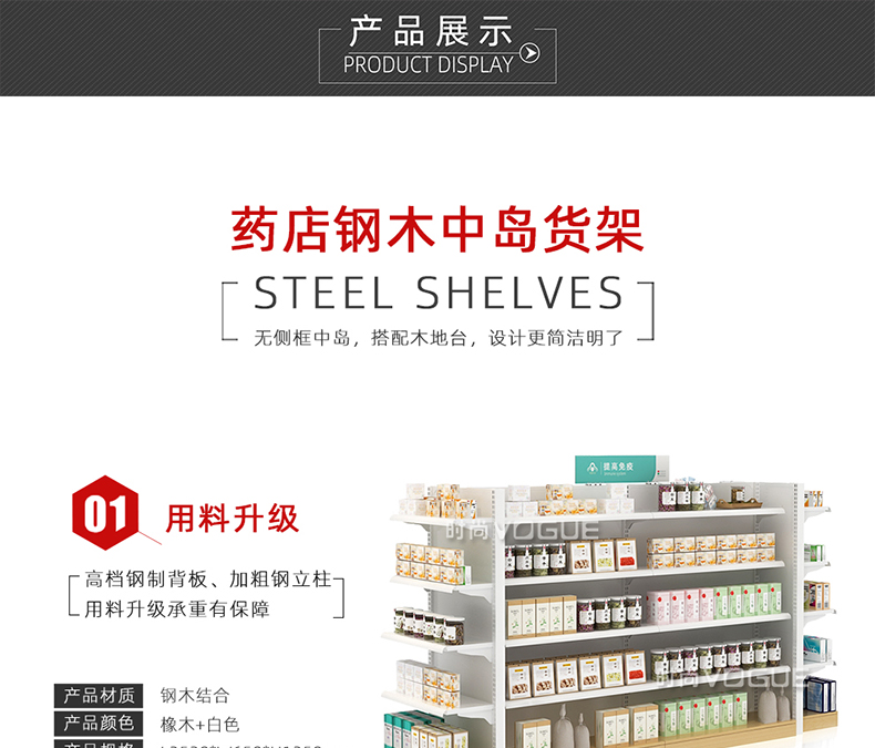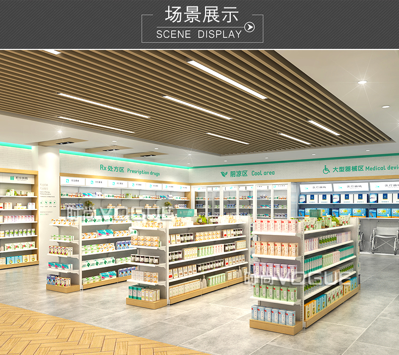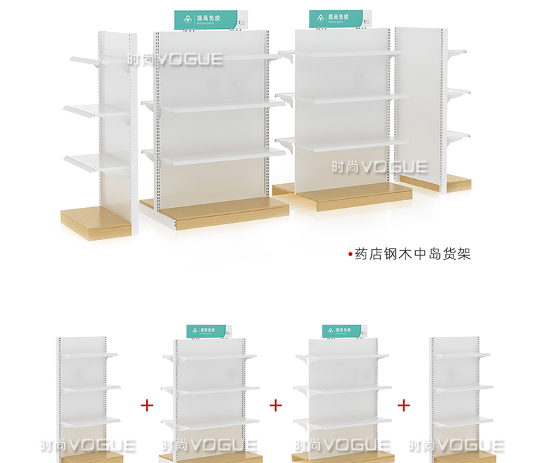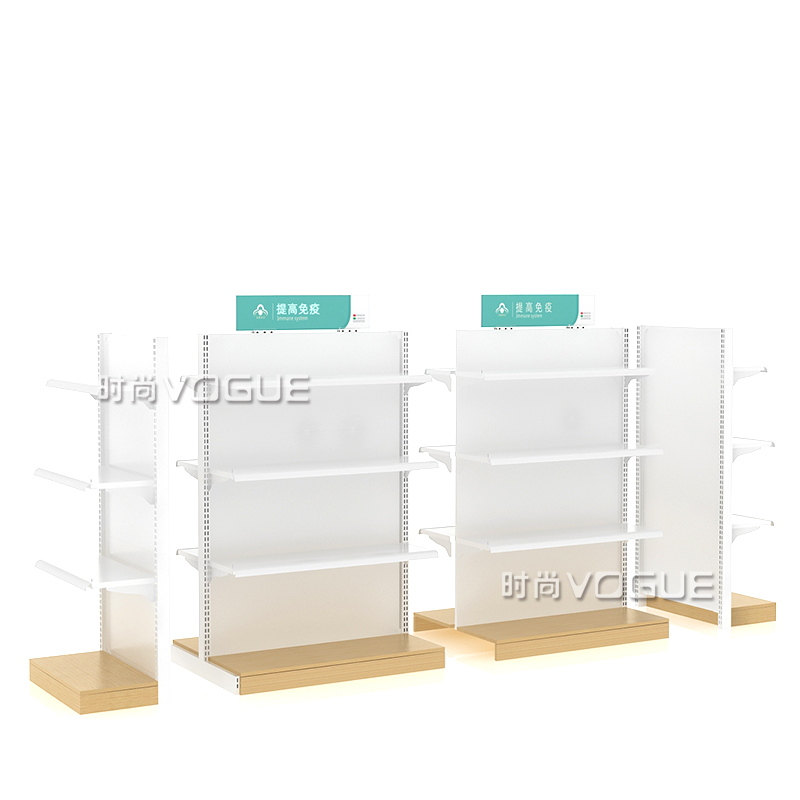 • 產(chǎn)品描述:深圳市時尚商貿(mào)有限公司為社區(qū)藥店設(shè)計了一款經(jīng)濟型的開放式西藥貨架,以下詳細介紹了藥店非處方貨架的尺寸、結(jié)構(gòu)和陳列效果。