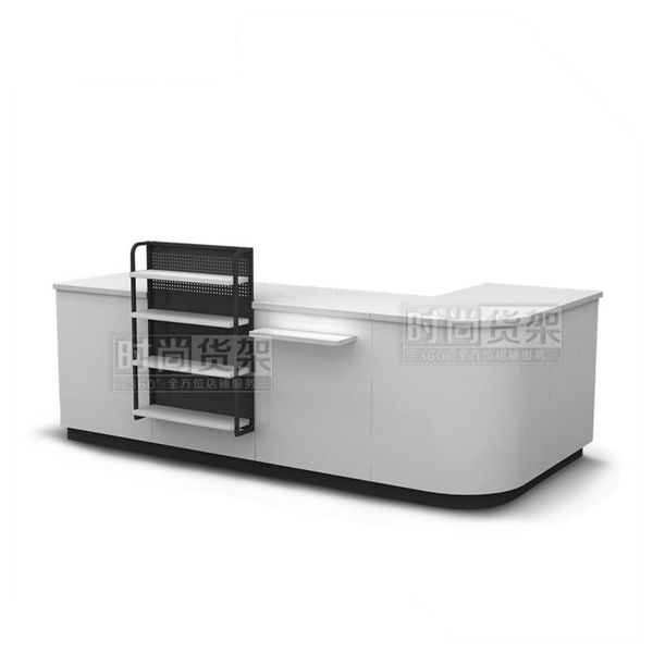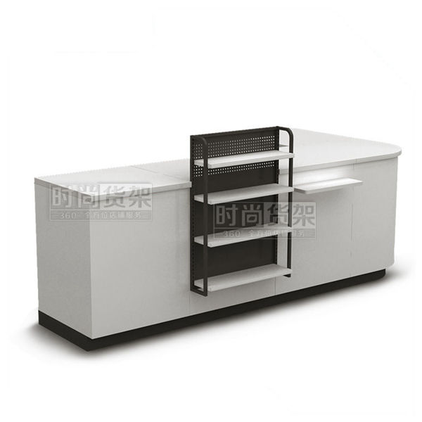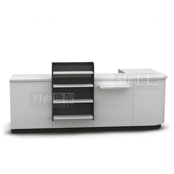 【描述】此款藥店貨架是深圳時尚貨架2017年為藥店用戶推出的一款弧形轉角收銀臺。采用組合式設計,可拼接成1.8米、2.4米、3米、3.6米等各種長度,可滿足顧客對藥店收銀區的規劃。2.4米藥店收銀臺,顧客可以選配一個小前架(可陳列小型熱賣商品)和一個置物板(方便顧客放置包裹)。收銀臺臺面采用優質三胺板,具有環保耐熱等特性。外形簡約大方,非常適合藥店使用!