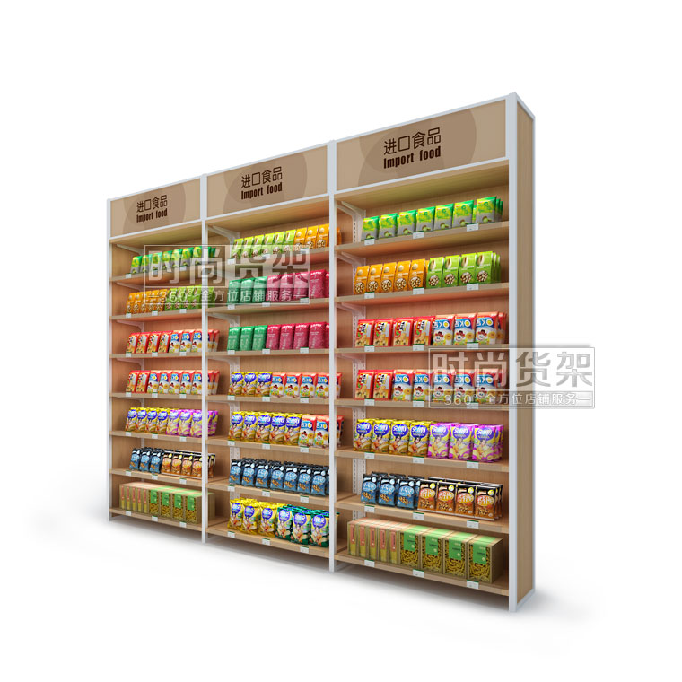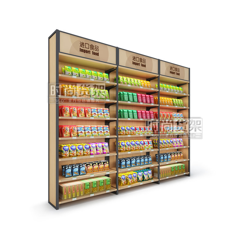 便利店貨架廠家【時尚貨架】推出的這款進口食品貨架適用于便利店食品區,商品展示效果佳,能有效提升便利店整體形象。