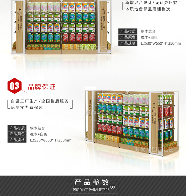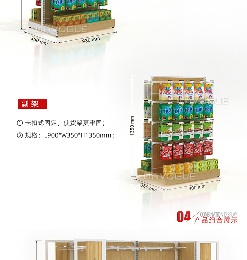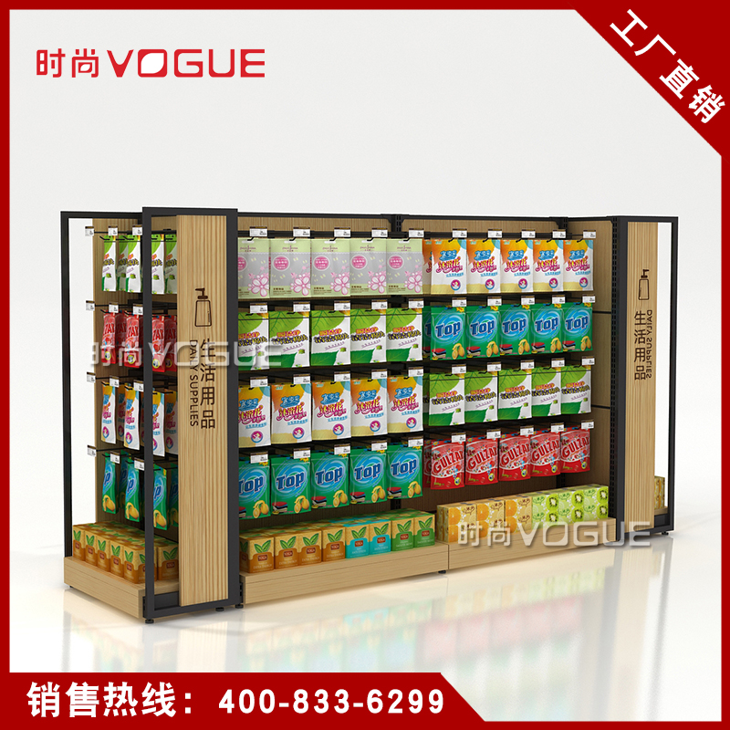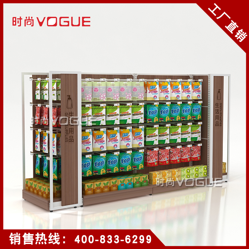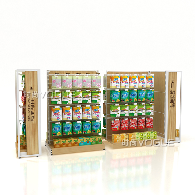 • 產品描述:本款木背板食品貨架是便利店貨架廠家最新推出的一款便利店貨架,掛鉤和層板可以互換,底部增加木地臺,更加美觀大氣。