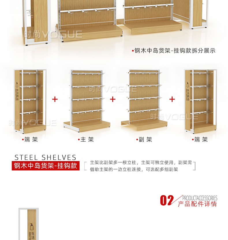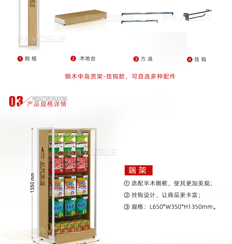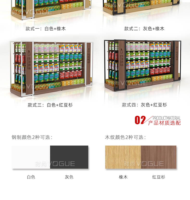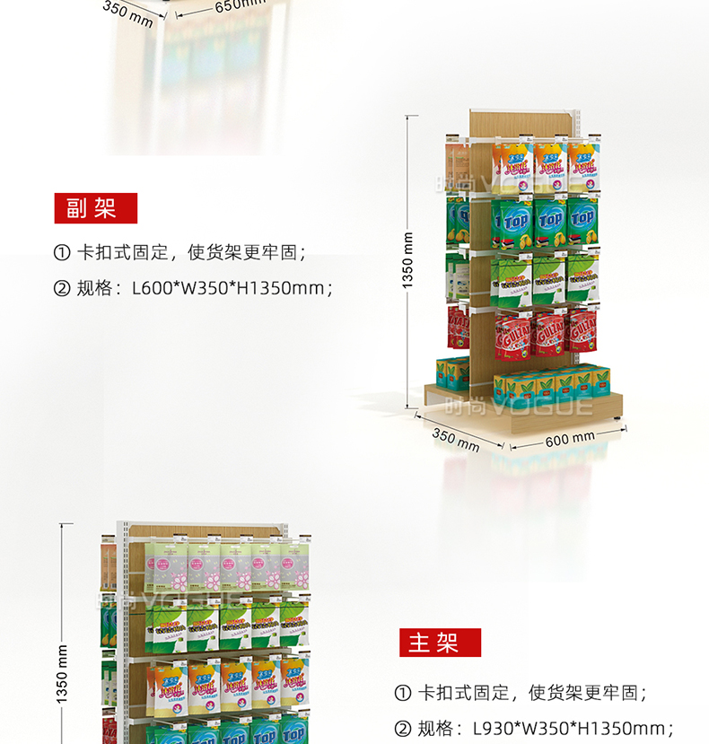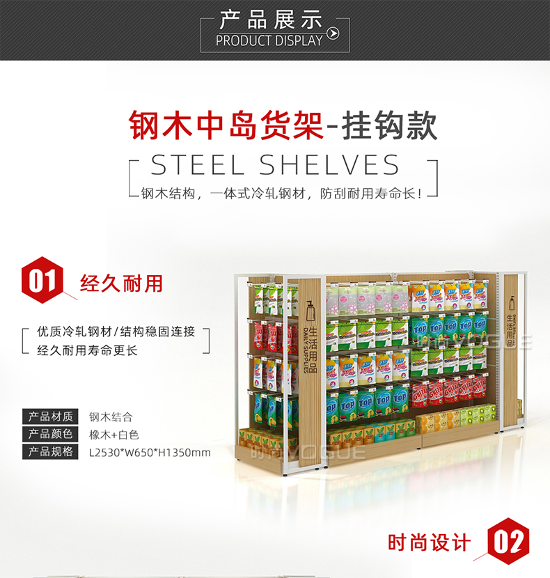 • 產品描述:本款木背板食品貨架是便利店貨架廠家最新推出的一款便利店貨架,掛鉤和層板可以互換,底部增加木地臺,更加美觀大氣。