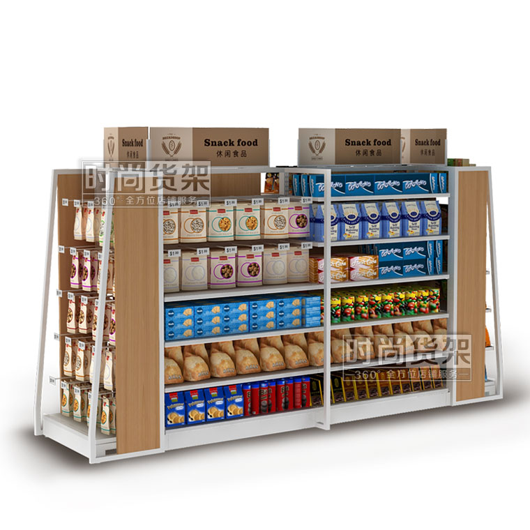 【產(chǎn)品名稱】高檔雙面中島架/品牌便利貨架/便利店木背板食品貨架