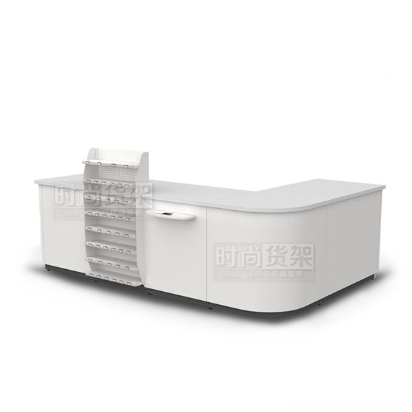 - 產(chǎn)品描述:此款便利店收銀臺是時尚貨架專為中型多功能便利店設(shè)計的一款組合式轉(zhuǎn)角收銀臺。
