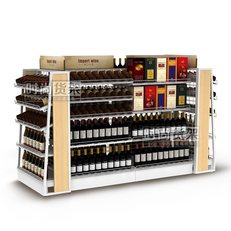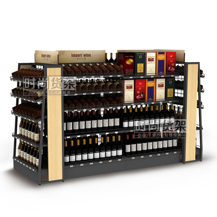 【產品名稱】紅酒中島貨架/便利店紅酒展示架/網背板紅酒貨架