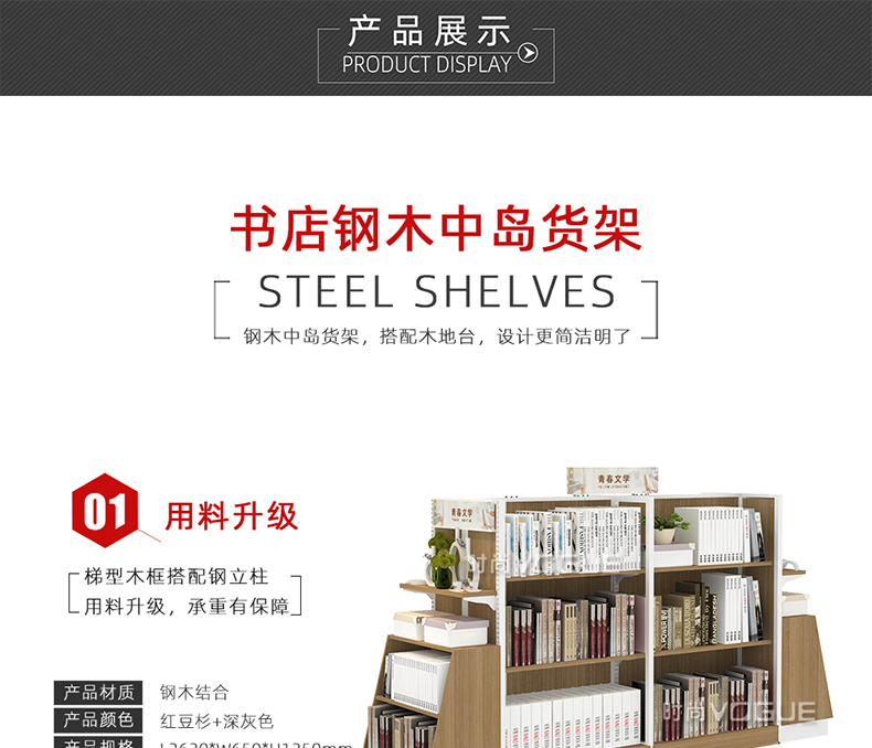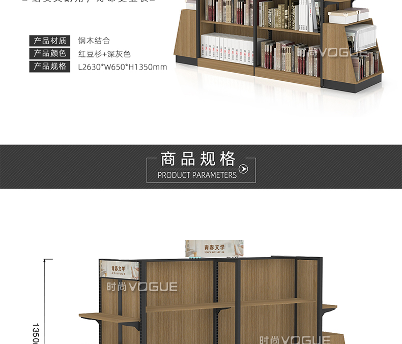 • 產品描述:這是時尚貨架專為書店圖書陳列打造的一款圖書店書架。